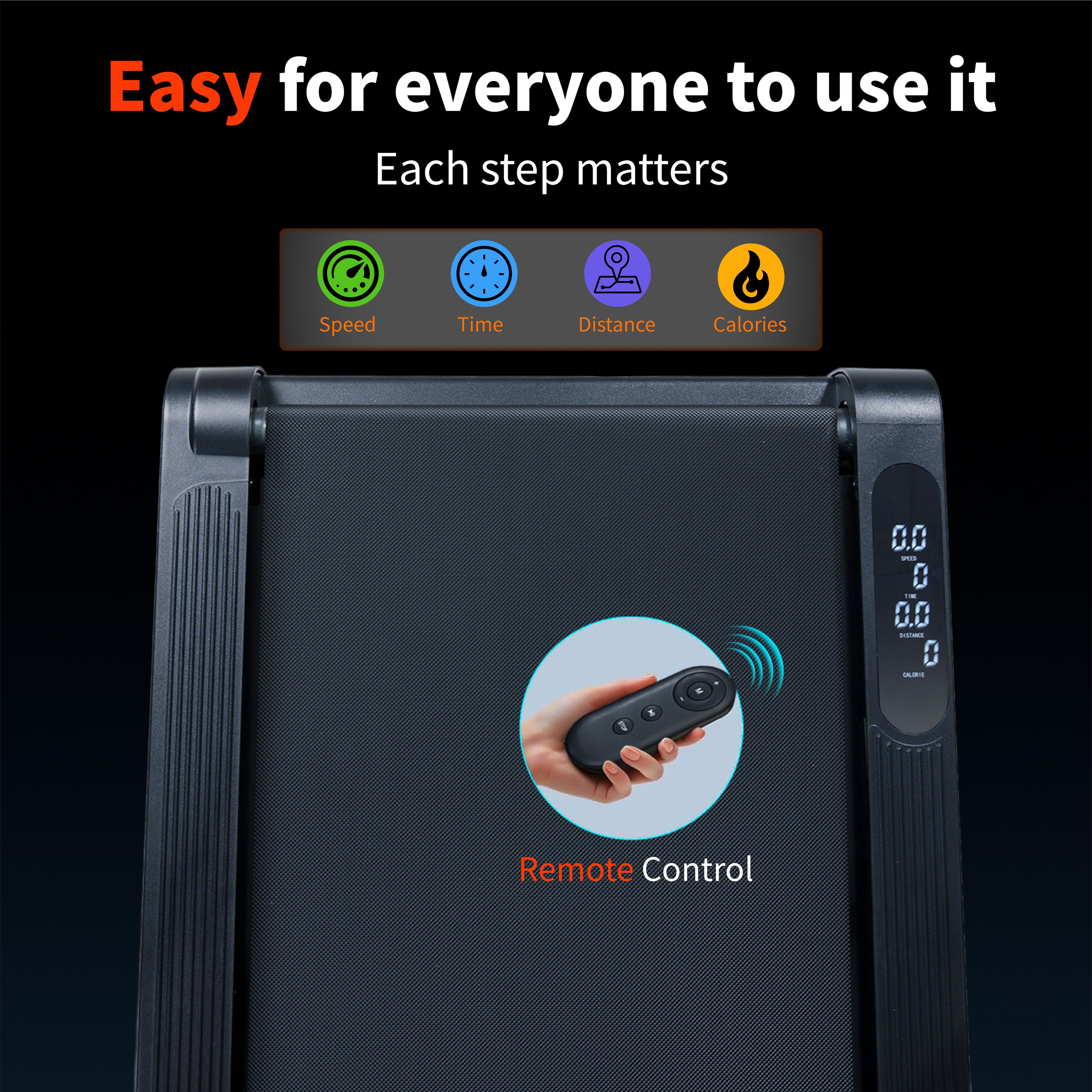 4. "Easy Mobility & Storage": "Built for convenience, this under-desk treadmill features a dual-wheel moving system for effortless transport and storage. Its upright storage design makes it a perfect fit for small spaces."