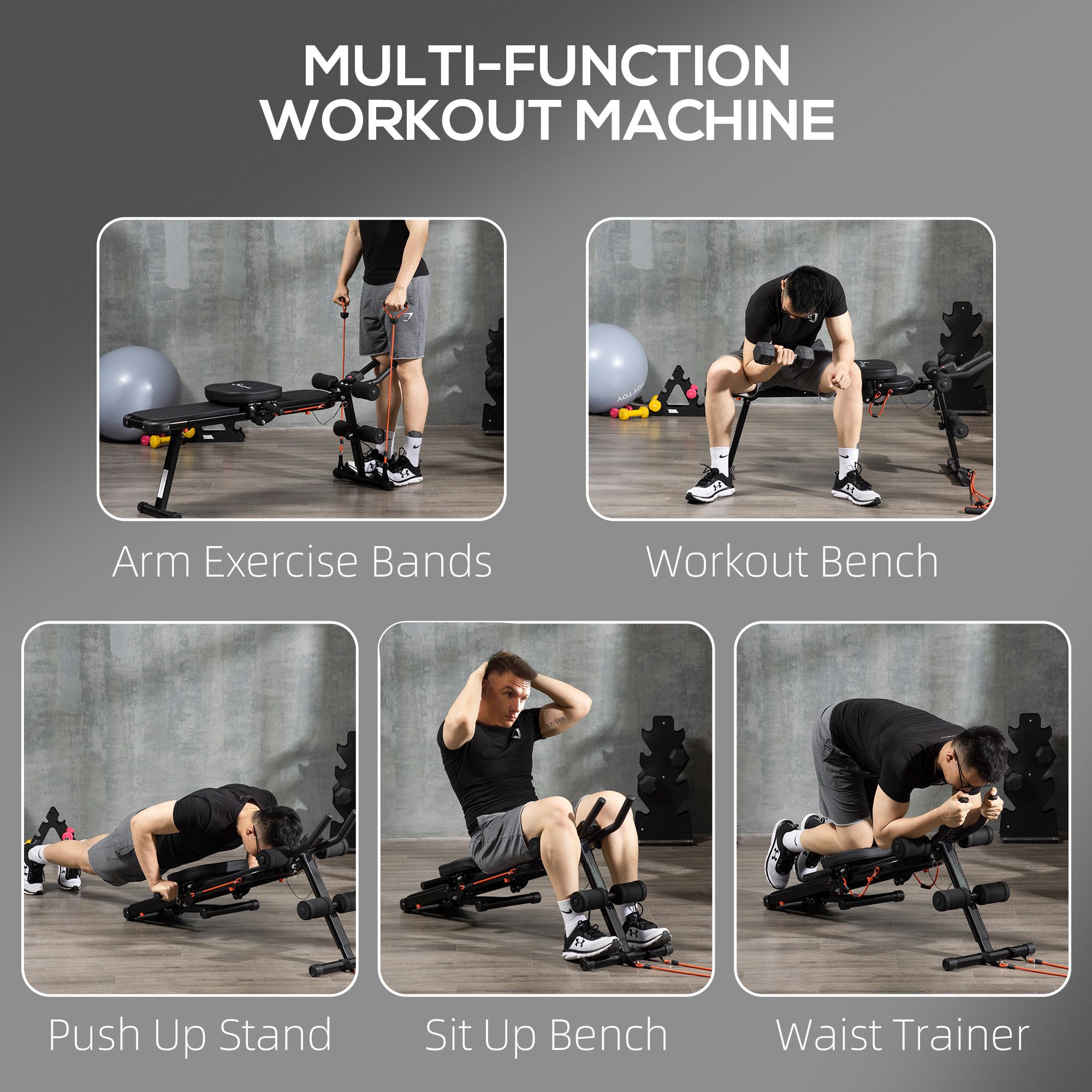 2.- Versatile Use: This ab workout machine combines numerous uses, offering a sit up bench, push-up stand, waist trainer, arm machine, and resistance bands, allowing you to do push ups, sit ups, ab crunches and more in device, providing a full body workout.
