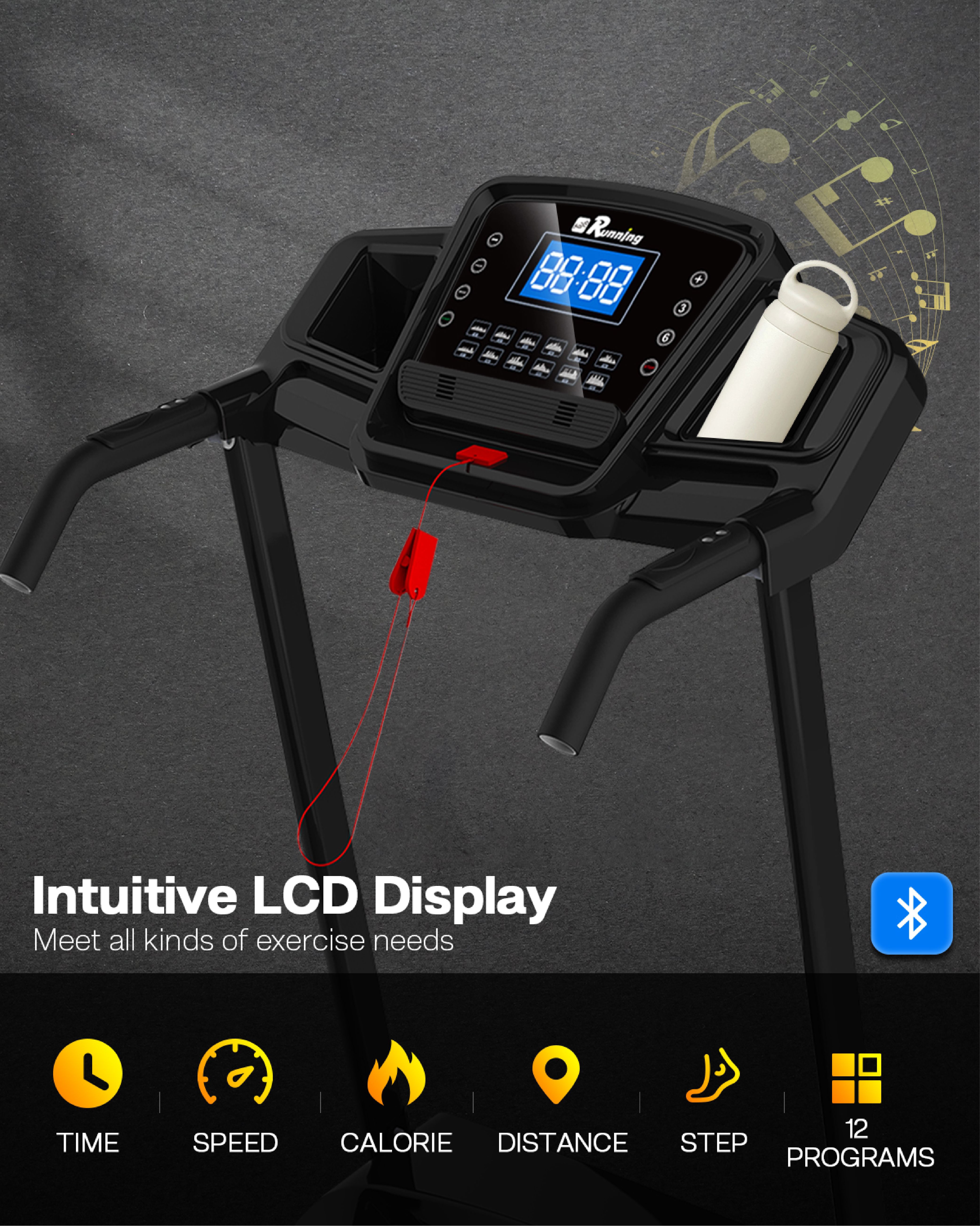 12 TRAINING PROGRAMS & 3 MANUAL INCLINE - The electric treadmill is equipped with 12 preset training modes. Choose the most suitable program of the running machine according to the amount of exercise needed, and the intensity is fully customizable by adjusting the treadmill speed. The incline treadmill is equipped with adjustable slope angles, and you can easily switch between them by adjusting the base. Ideal for you to run, walk and do aerobic exercises at home.