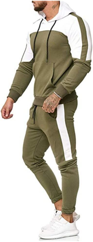 Men's Hooded Sweater Tracksuit Sports Casual Colorblock Sweater Jogger Pants 2-piece Set