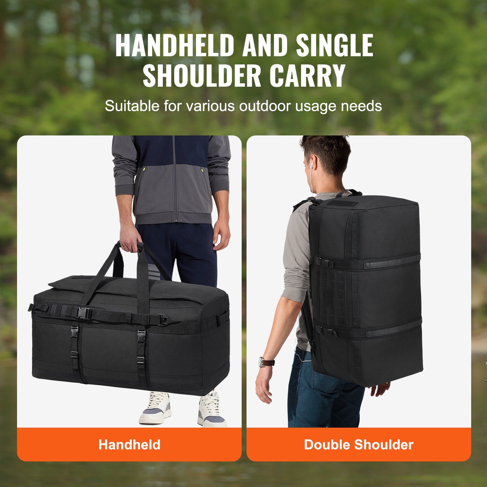 This duffle bag effortlessly transforms into a carry-on bag, crossbody bag, shoulder bag, hand-held bag, sports bag, or gym bag, providing ultimate flexibility for travel, vacations, and camping needs.