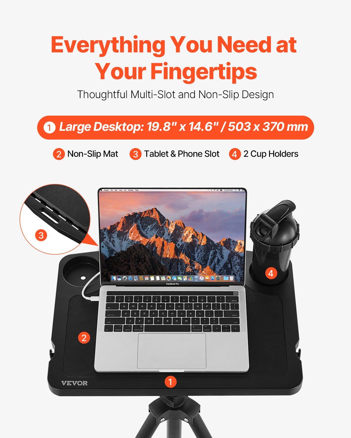 5.Stable & Durable Frame: Even under pressure, the desk remains stable and will not tip forward. The desktop is made from durable ABS material, and the steel tube support structure, combined with the triangular foot design, ensures extra stability, security, and long-term durability during use.